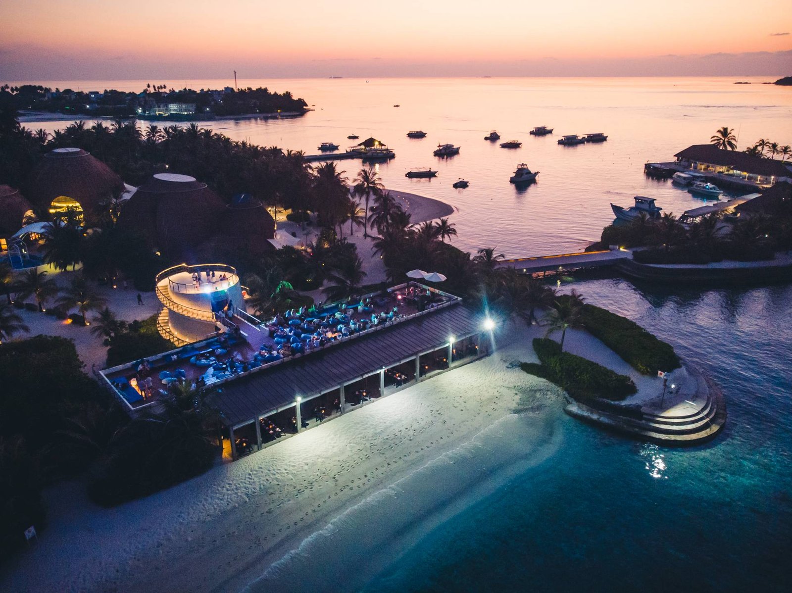 The resort offers 160 modern villas, each designed with bright tones, ocean-inspired accents, and thoughtful amenities. Dining spans three restaurants and four bars, from Kandooma Café’s international flavors to vibrant live music evenings.
