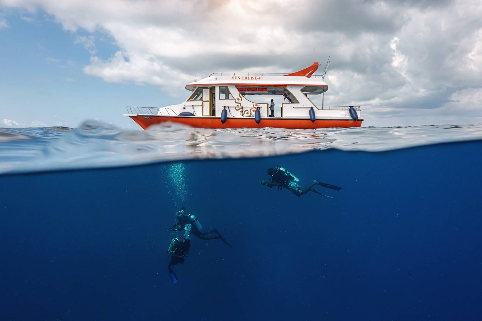 Overwater villas featuring private sun decks, sunrise-view jacuzzis, separate living rooms, and bright, luxurious bathrooms. Ideal for couples.