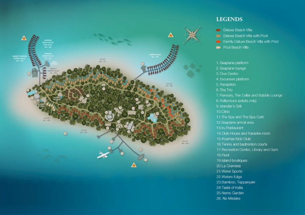 The resort is super easy to get to from Male city, and it’s built on an island with 4 kilometers of stunning white sand beaches all around it. It’s truly a tropical paradise!
